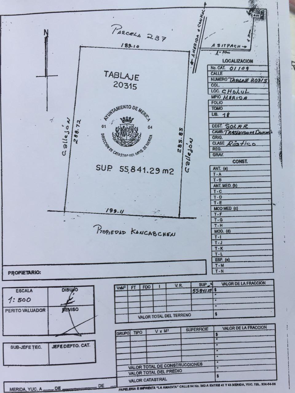 UBICADO EN CHOLUL, MUY CERCA DE LA CARRETERA A MOTUL Y A ESPALDAS DEL FRACCIONAMIENTO VILLAS CHOLUL.